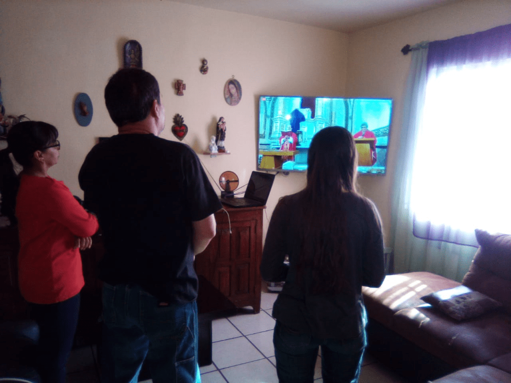 Mariana en Chihuahua se plantea otra contradicción evidente con la tradición y la realidad de la Semana Santa en la pandemia, “antes ni prender la tele podías, ahora se tiene que hacer a fuerzas para ver la misa ahí”. Esta adaptación se justifica como una práctica necesaria convocando a la comprensión de los fieles, resignificando la religiosidad en el temporal encierro. Es una forma de buscar y mantener la conexión con la comunidad, de recordarse que el hecho de tener que estar en casa no significa que estén aislados porque hay otros que están siguiendo la misa con ellos, en Facebook o en televisión.