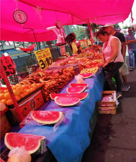Buscar la frescura de los alimentos sigue siendo prioridad para las personas. Por eso se aprovechan los tianguis que todavía logran ponerse o las camionetas que venden frutas y verduras dentro de las colonias. Además, las medidas higiénicas como el gel y los cubrebocas parecen no ser “necesarias” en estos contextos.
