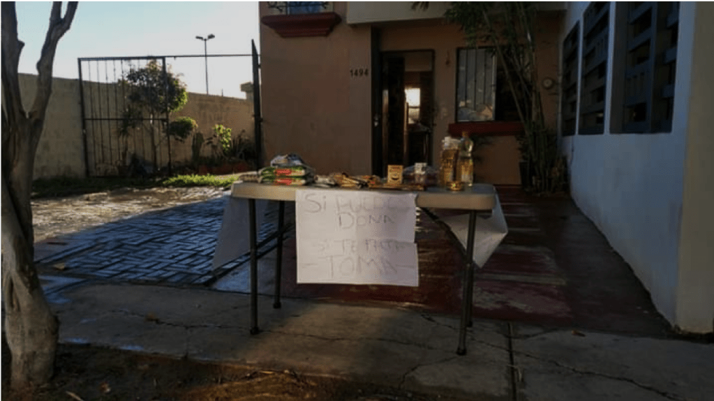 En Guadalajara comenzó a gestionarse la ayuda. En momentos de crisis la tarea es ser solidarios y en el cartel se lee: “si puedes dona, si te falta, toma.