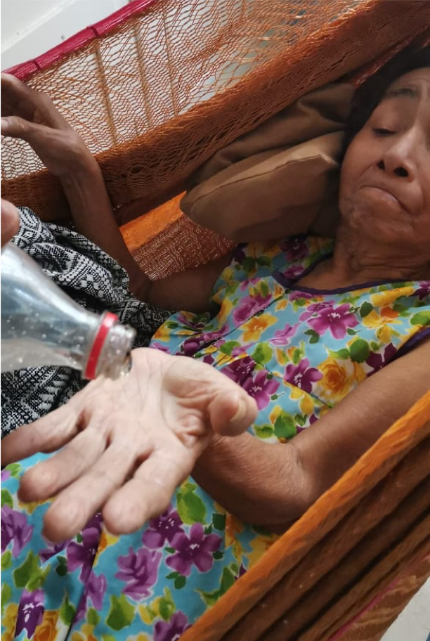 La constante es cuidar a los mayores, a Doña Adelaida es a la que más cuidan, le han mostrado que debe lavarse las manos constantemente y usar el gel como medio de prevención.