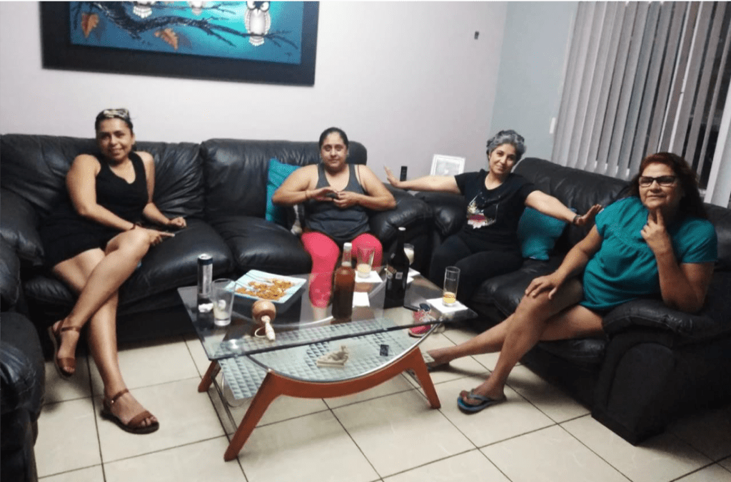 En casa de la familia Santoyo, Gabriela retoma las reuniones de costumbre con sus amigas. La trayectoria de amistad y la confianza generada es el filtro que amaina la contingencia y las precauciones.